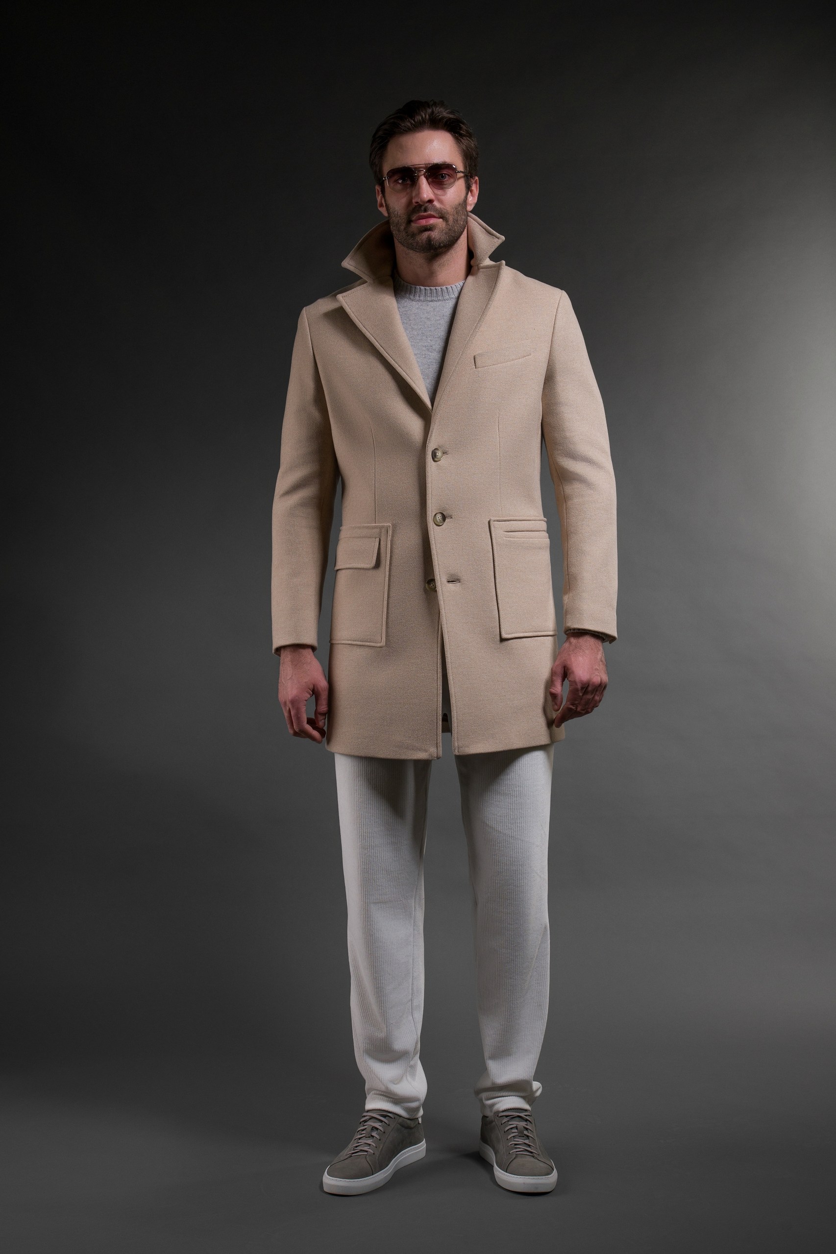 Пальто мужское - бежевый тренч из 100% шерсти кашемира. Мужская мода диктует свои правила! И сегодня мы представляем вашему вниманию пальто мужское – бежевый тренч, выполненный из 100% шерсти кашемира. Это выбор настоящих джентльменов, которые ценят качество и стиль. Бежевый цвет всегда актуален и подходит практически к любому гардеробу. Кашемир же славится своей мягкостью и прочностью одновременно. Такое пальто станет прекрасным дополнением как для повседневного образа, так и для особых случаев.