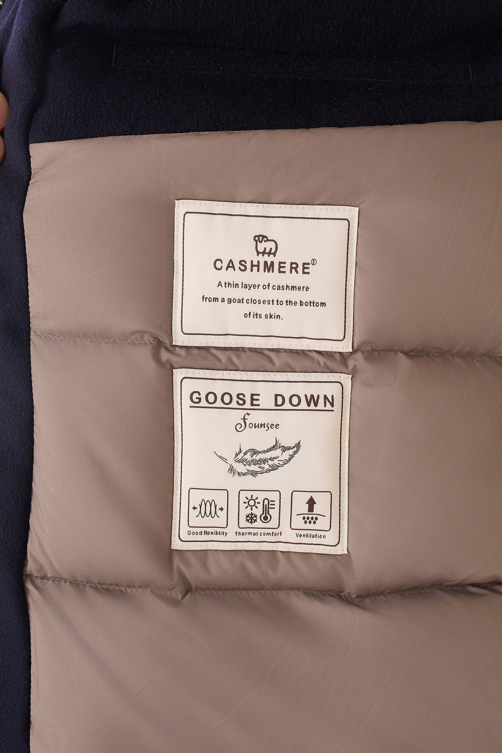 Состав 100% кашемир, Подклад 100% полиэстер. Наполнитель пух-перо