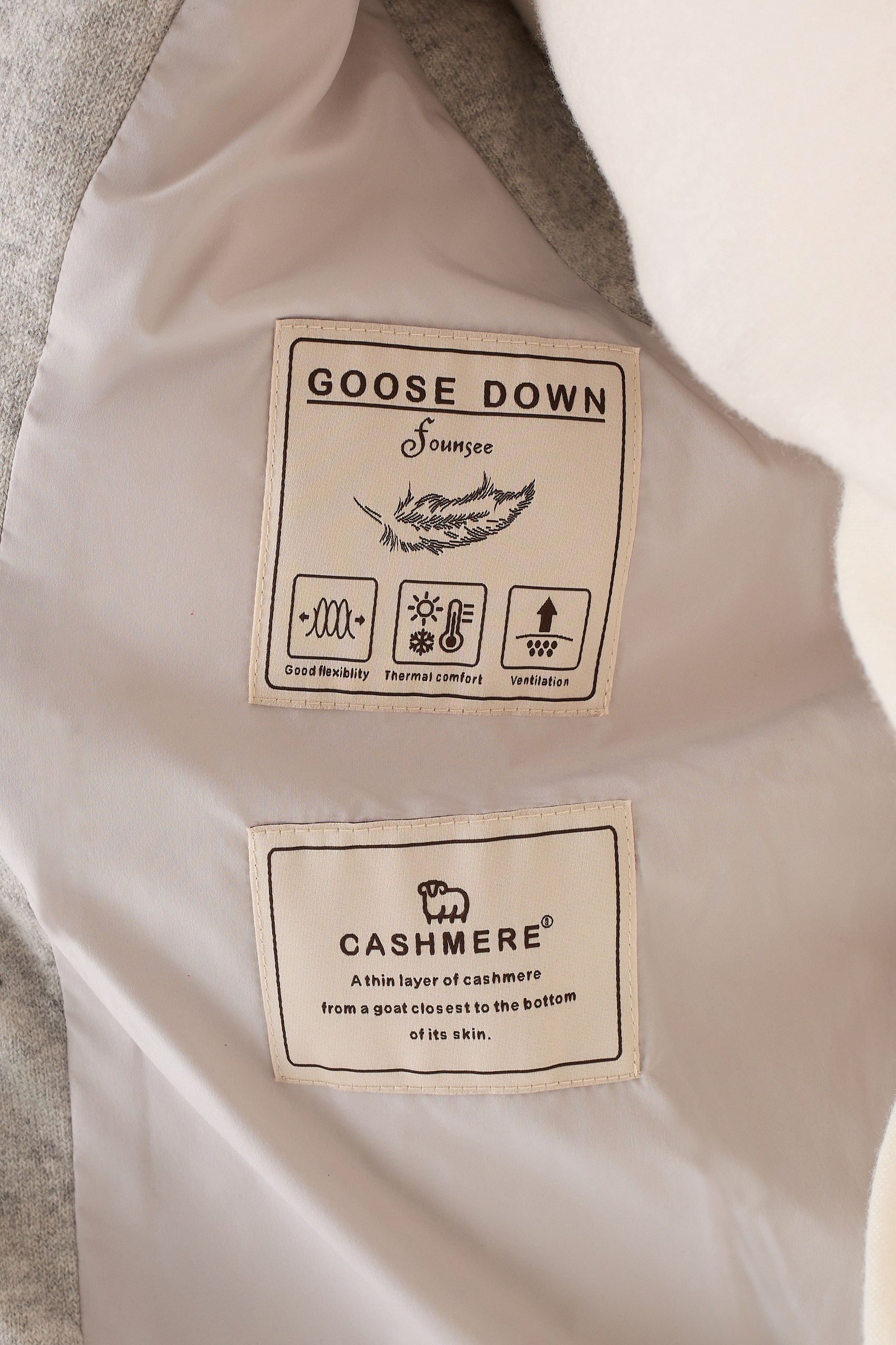 Состав 100% кашемир, Подклад 100% полиэстер. Наполнитель пух-перо