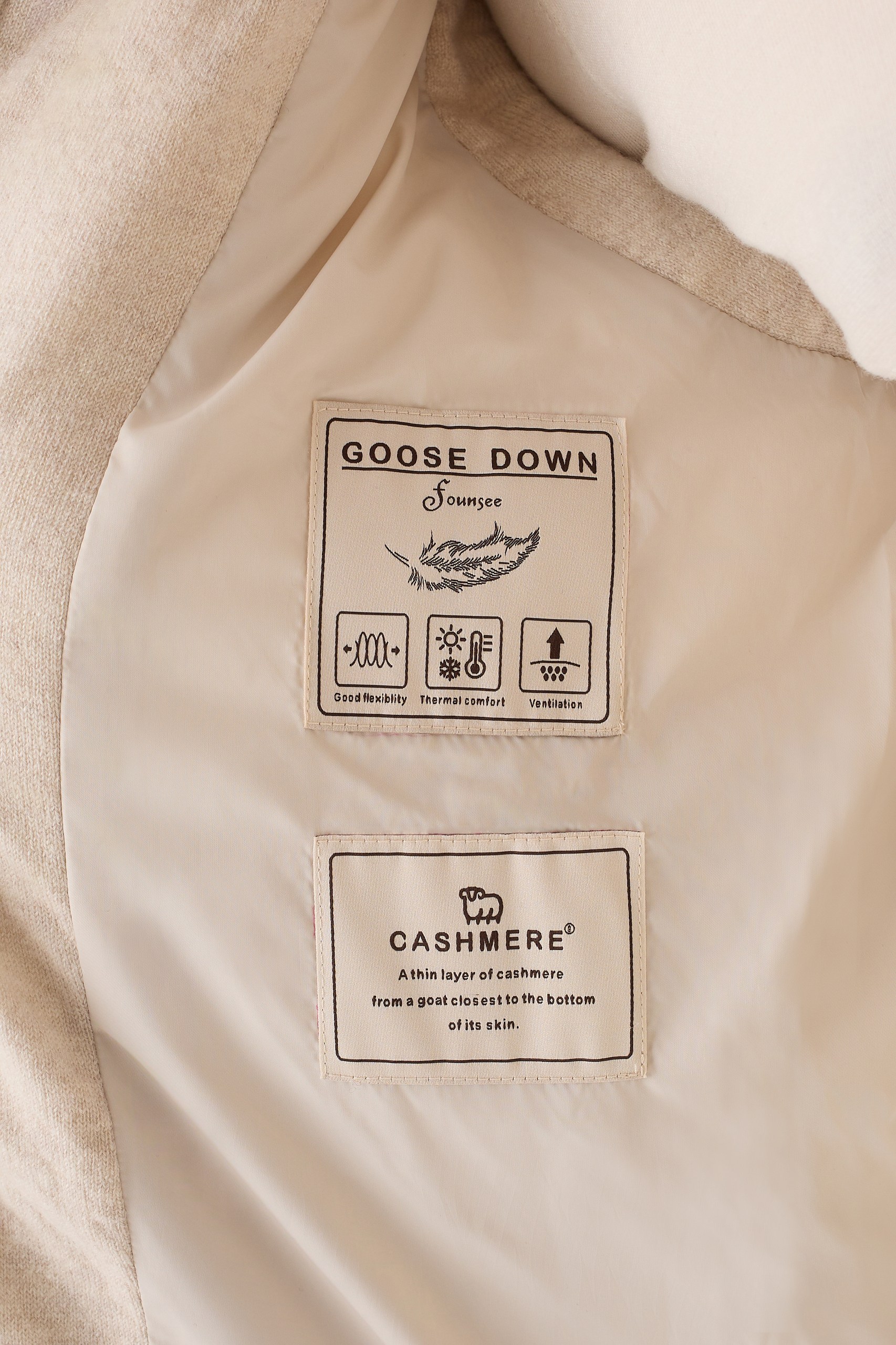 Состав 100% кашемир, Подклад 100% полиэстер. Наполнитель пух-перо